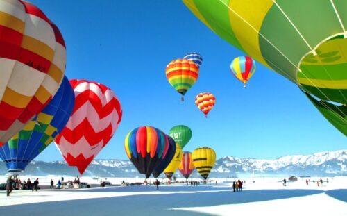 Niigata sedia festival de balões de ar quente sobre a neve em fevereiro