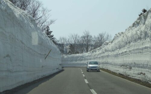 Aomori - Um corredor de neve apresentando massivas paredes de neve em ambos os lados de uma rota nac...