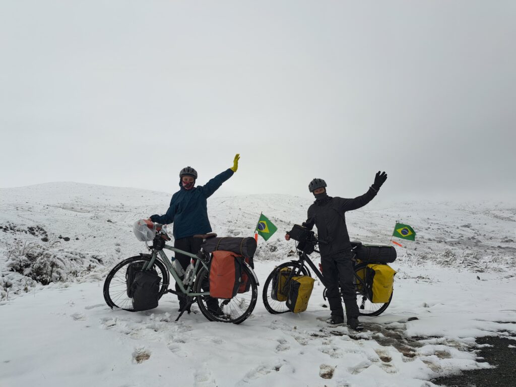 Larissa, de 34 anos, e Jean Carlos, de 37, deixaram Brusque, em Santa Catarina, no dia 18 de junho de 2023, determinados a percorrer o mundo de bicicleta, mas sem um plano rígido. “Vendemos nossos pertences e deixamos nossos empregos”, disseram.