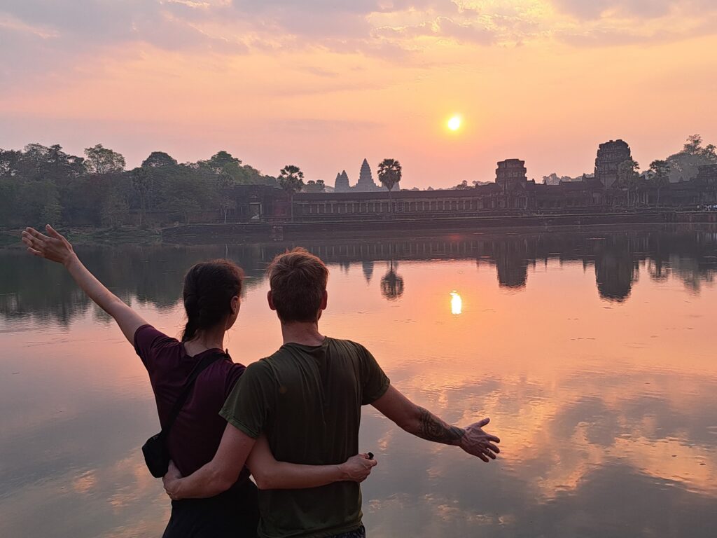 O casal em visita ao Camboja