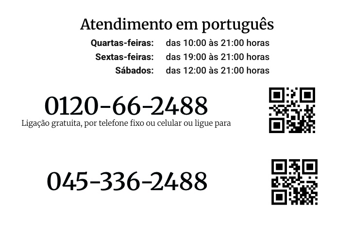 0120-66-2488 ou 045-336-2488 (não precisa reservar horário)